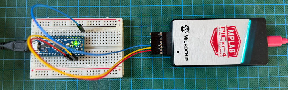 The pin mapping for the PICkit4 looks as follows, where I have added the Arduino pins in the last two columns.