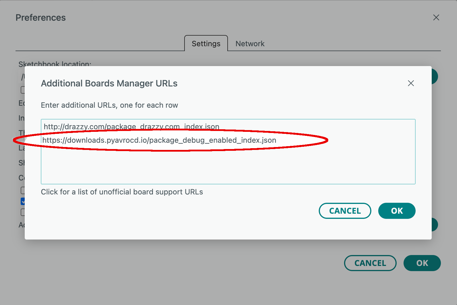 Step 1: Extend the list of boards manager URLs